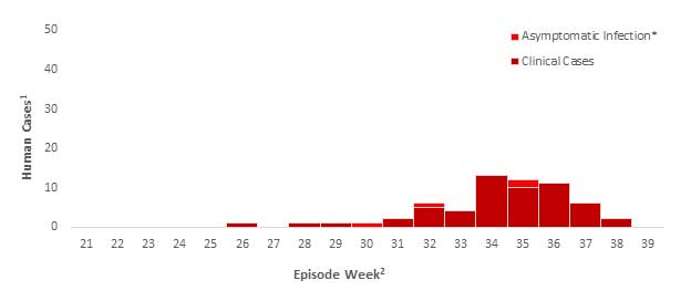 As of surveillance week 43, ending on October 24, 2020, eighty-six human cases of West Nile virus (WNV) have been reported to the Public Health Agency of Canada (PHAC) (Table 1). Of these, three are reported as deaths.