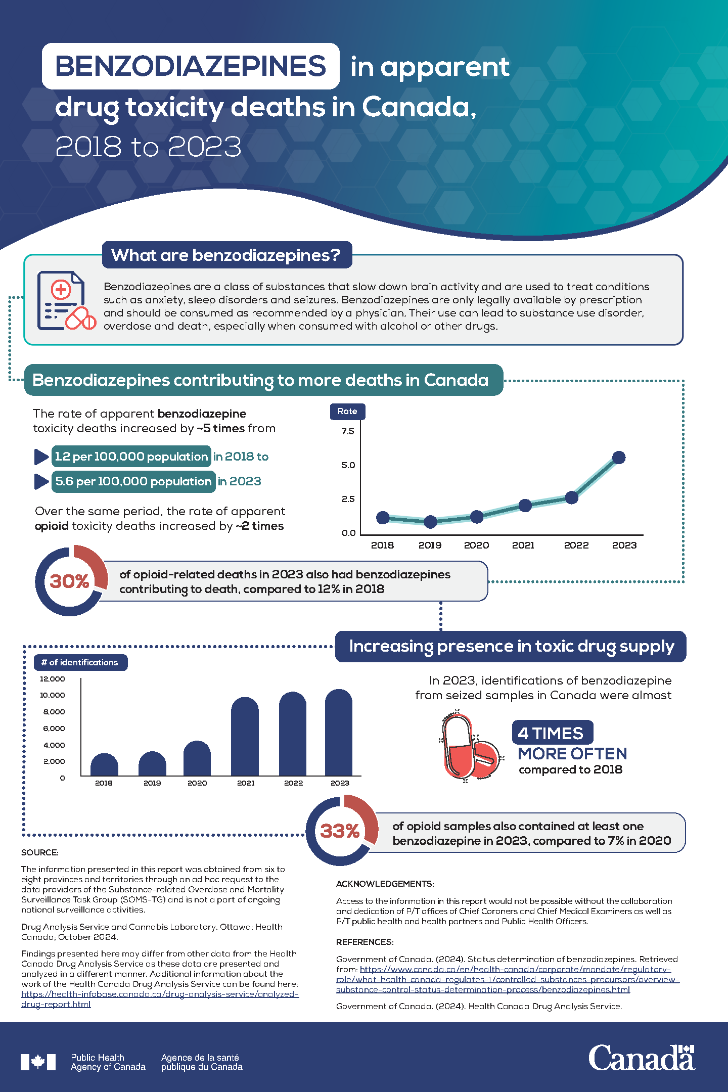 Benzodiazepines in apparent drug toxicity deaths in Canada, 2018 to 2023: Infographic