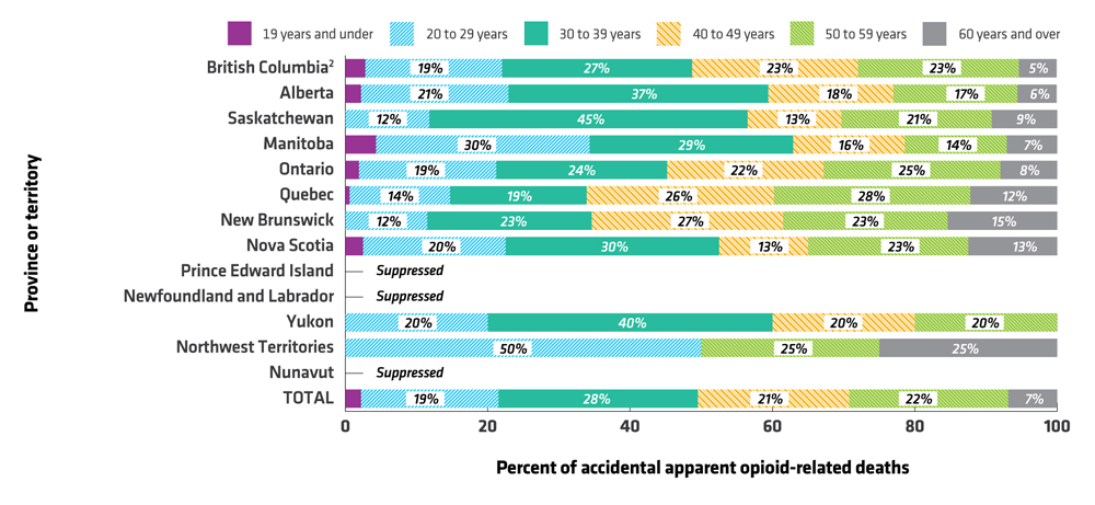 - Data released by provinces and territories may differ from the data provided in this report due to the availability of updated data, differences in the type of data reported (e.g. manners of death), the use of alternate age groupings, differences in time periods presented and/or population estimates used for calculations, etc.
