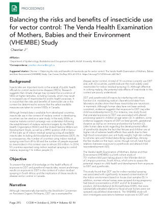 Balancing the risks and benefits of insecticide use for vector control: The Venda Health Examination of Mothers, Babies and their Environment (VHEMBE) Study