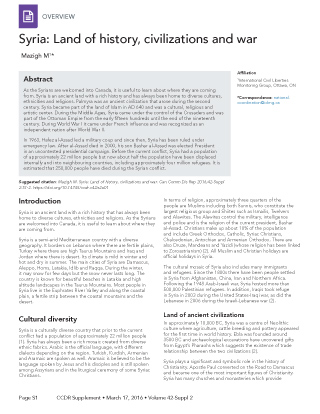 Mazigh M. Syria: Land of history, civilizations and war. Can Comm Dis Rep 2016;42-Suppl 2:S1-2. https://doi.org/10.14745/ccdr.v42is2a01