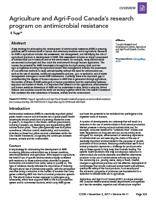 Topp E, Agriculture and Agri-Food Canada’s research program on antimicrobial resistance. Can Commun Dis Rep. 2017;43(11):224-7. https://doi.org/10.14745/ccdr.v43i11a03