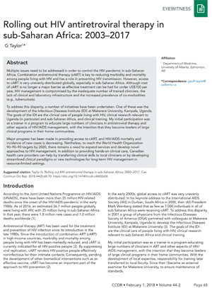 Taylor G. Rolling out HIV antiretroviral therapy in sub-Saharan Africa: 2003–2017. Can Commun Dis Rep. 2018;44(2):68-70. https://doi.org/10.14745/ccdr.v44i02a06