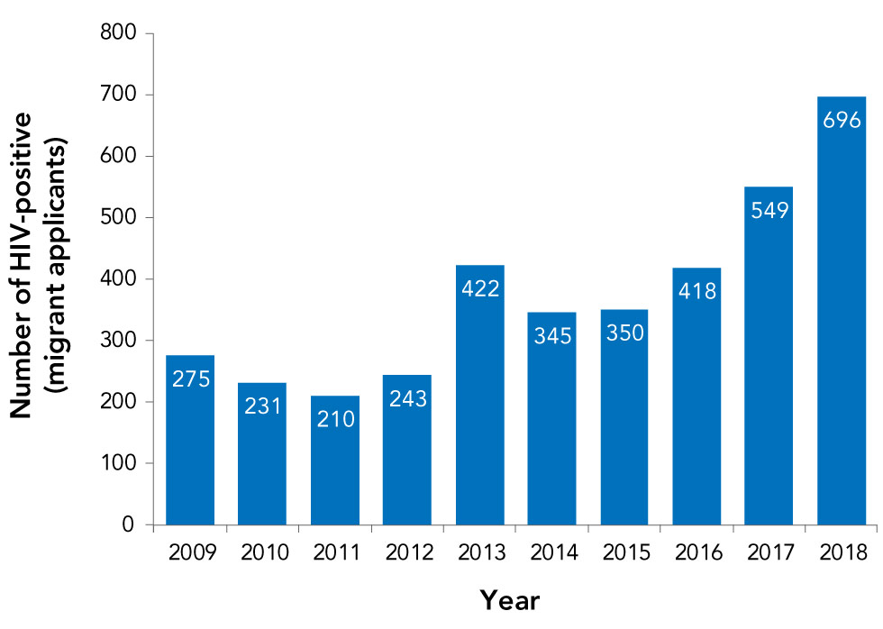 | Year | Number of HIV-positive (migrant applicants) |