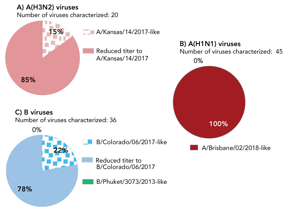 Antigenic and genetic characterization results to date suggest that the majority of circulating A(H3N2) and B viruses are not similar to the components recommended for use in the 2019–2020 seasonal influenza vaccines, and that the majority of circulating A(H1N1) viruses are similar to the recommended componentsFootnote 7. This may be indicative of low level protection of the vaccine against the A(H3N2) and B strains. However, it is important to note that the effectiveness of influenza vaccines depend on several factors and cannot be predicted based solely on the similarity of currently circulating viruses relative to the vaccine reference viruses.