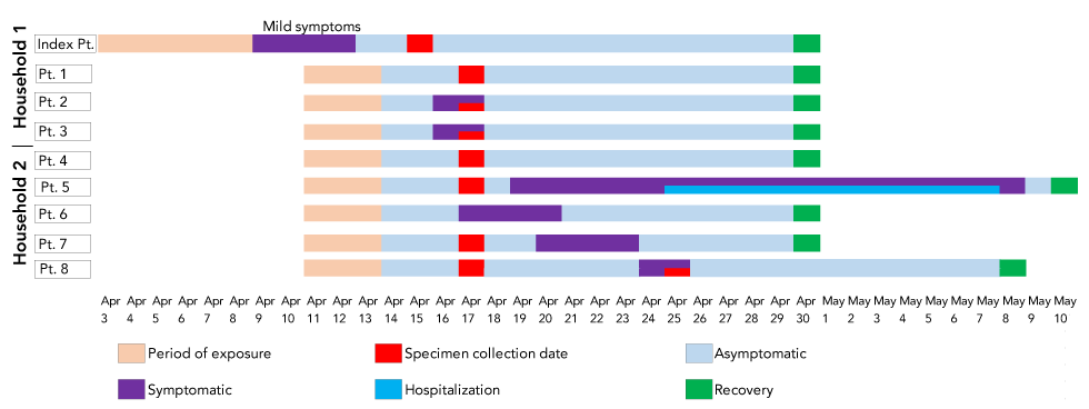 Figure 1: Timeline of exposure to index and household cases in familial cluster