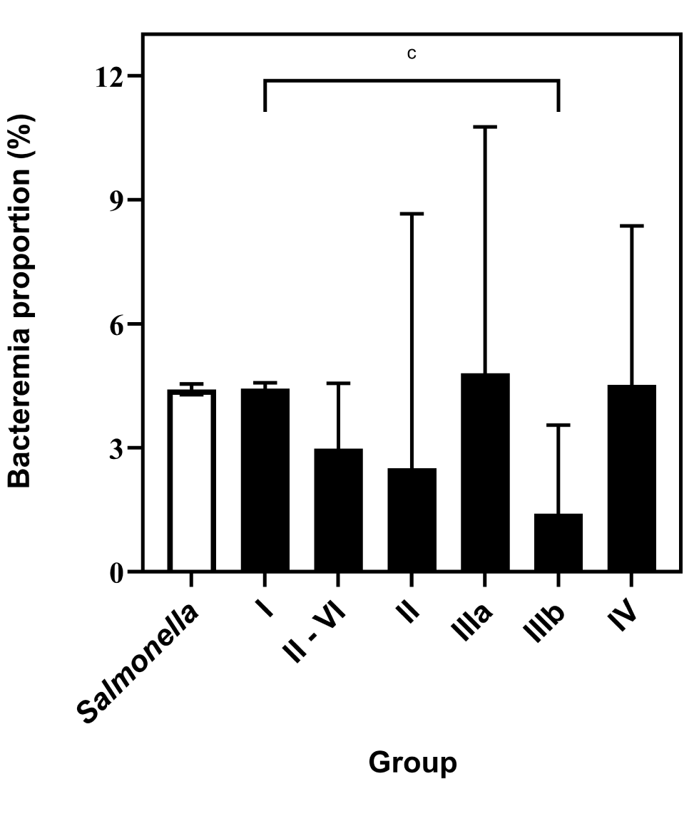| Salmonella sub-species | Bacteremia proportion (%) | 95% confidence interval |
