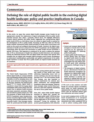 Commentary – Defining the role of digital public health in the evolving digital health landscape: policy and practice implications in Canada