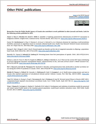 Researchers from the Public Health Agency of Canada also contribute to work published in other journals and books. Look for the following articles published in 2025: