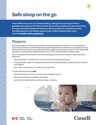 Remember that to be safe for sleep, a travel bassinet must meet current Canadian regulations.