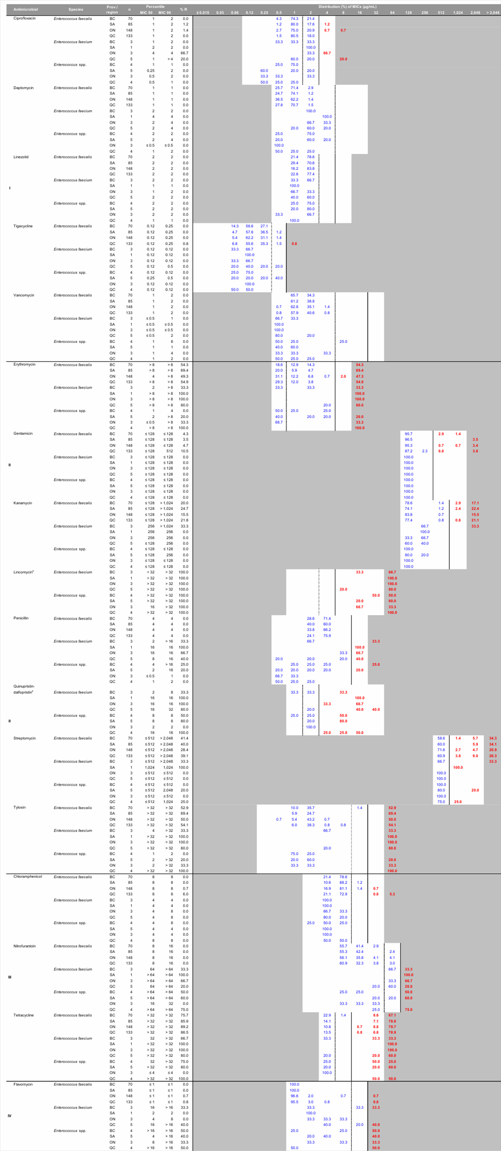 Appendix B: 2008 Canadian Integrated Program for Antimicrobial Resistance Surveillance (CIPARS) annual report – Minimal inhibitory concentration tables