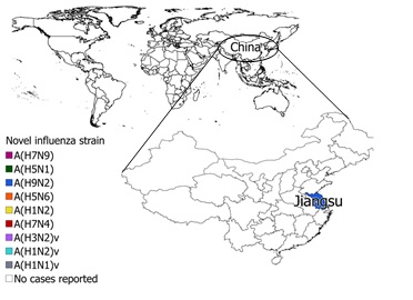 The spatial distribution of avian and swine influenza human cases in March 2019 has been displayed in Figure 2. 5 One avian influenza A(H1N2) has been reporten in March 2019 from China, in Jiangsu Province.