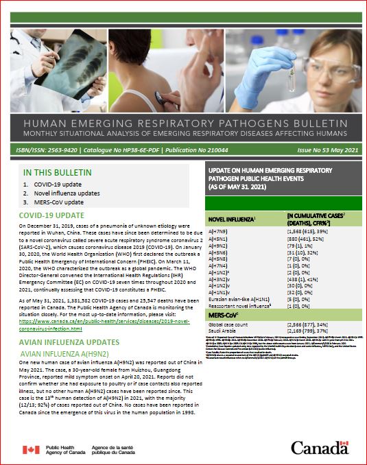 Human emerging respiratory pathogens bulletin: Issue 53, May 2021