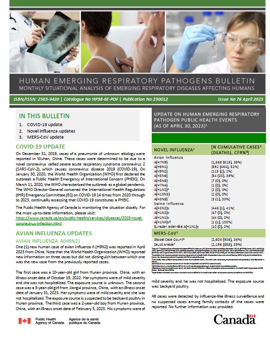 Human emerging respiratory pathogens bulletin: Issue 76, April 2023
