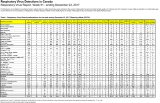 Table 1: Respiratory Virus Detections/Isolations for the week ending December 23, 2017 (Reporting Week 201751)