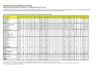 Table 1: Respiratory Virus Detections/Isolations for the week ending February 16, 2019 (Reporting Week 201907)