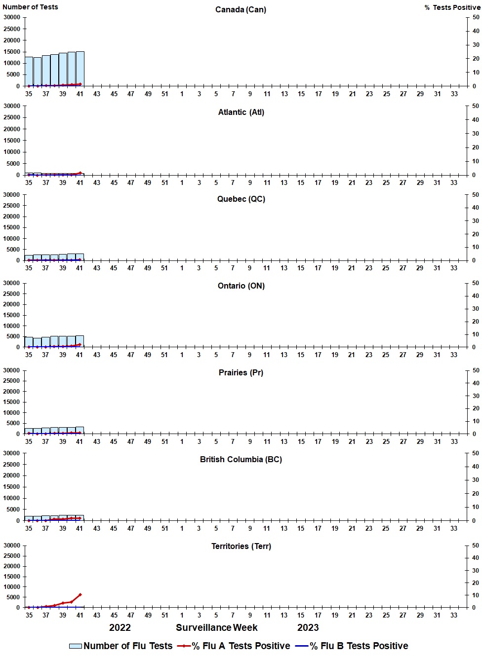 | Week | Week end | Can Tests | Can A% | Can B% | Atl Tests | Atl A% | Atl B% | QC Tests | QC A% | QC B% | ON Tests | ON A% | ON B% | Pr Tests | Pr A% | Pr B% | BC Tests | BC A% | BC B% | Terr Tests | Terr A% | Terr B% |