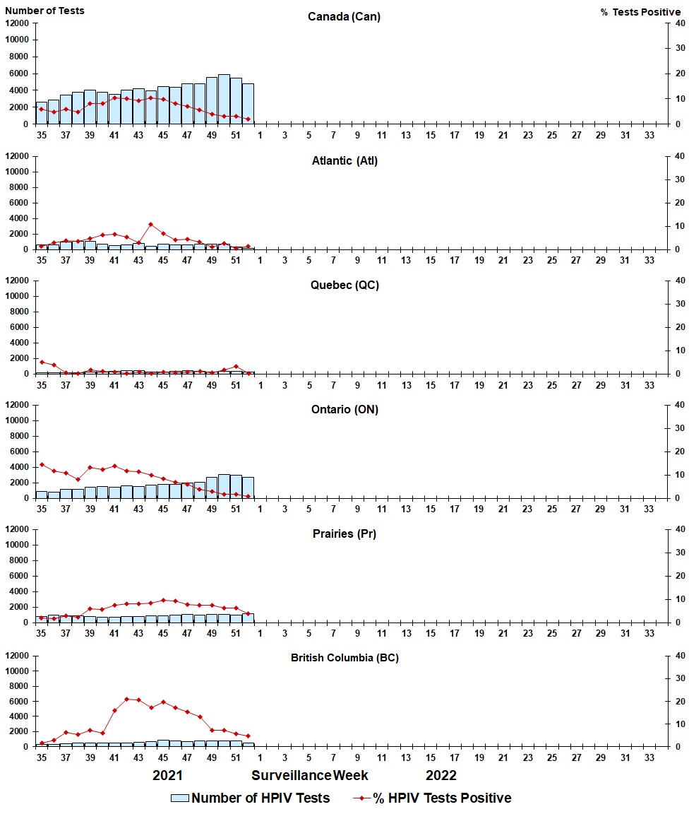 - Positive human parainfluenza virus (HPIV) tests