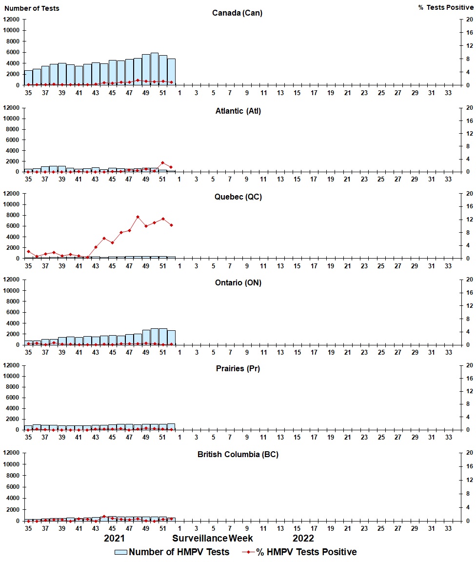 | Week | Week End | Can Tests | HMPV% | Atl Tests | HMPV% | QC Tests | HMPV% | ON Tests | HMPV% | Pr Tests | HMPV% | BC Tests | HMPV% |