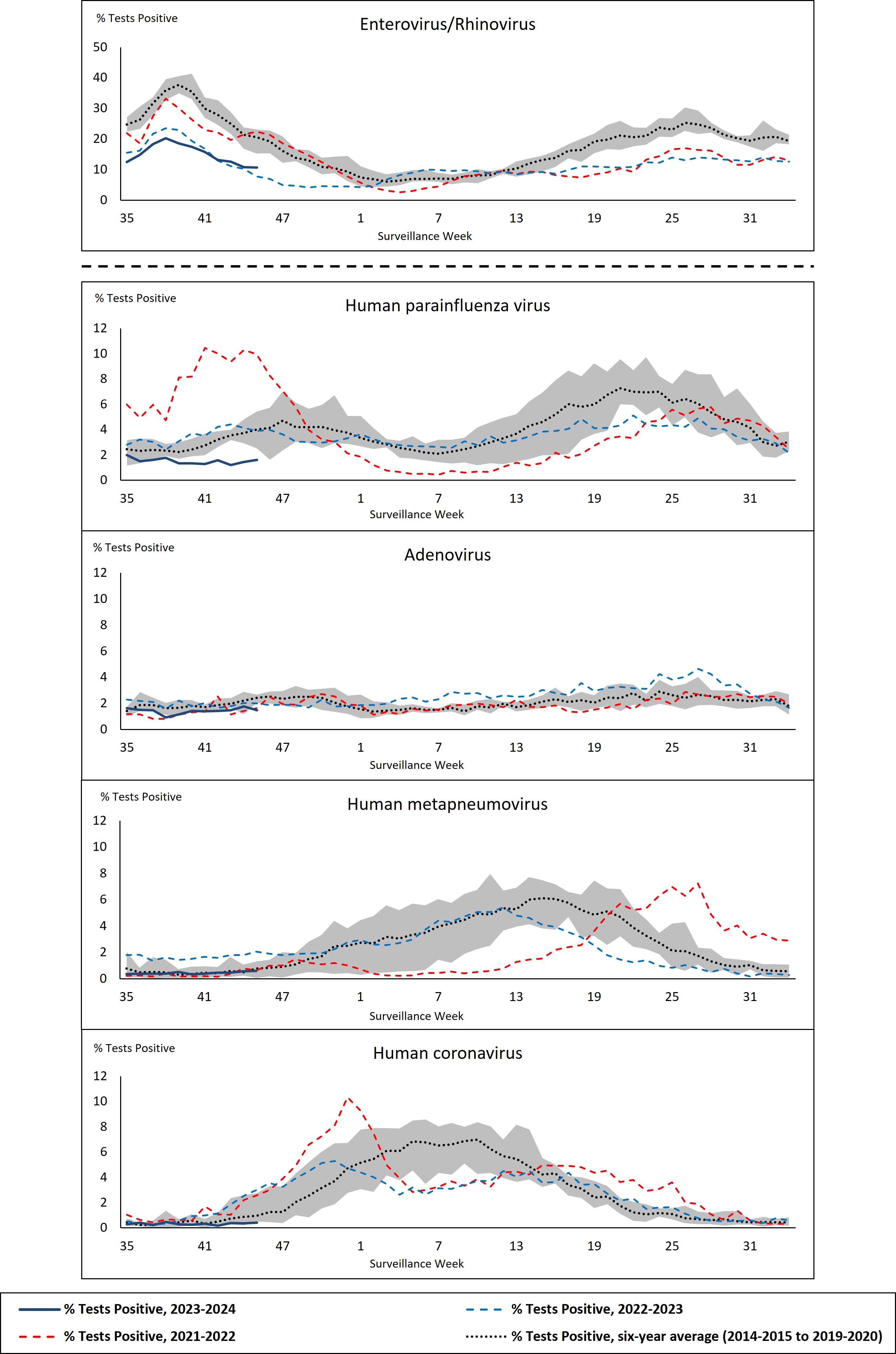 - Positive respiratory virus tests historical comparison
