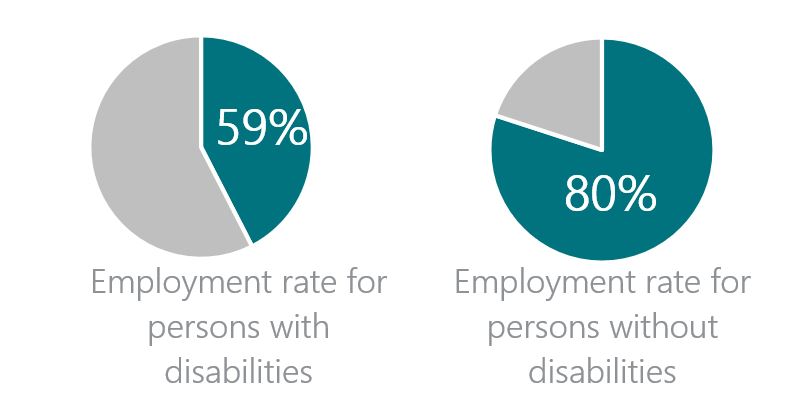 People with disabilities have a low rate of employment: “Among those aged 25 to 64 years, people with disabilities were less likely to be employed (59%) than those without disabilities (80%)” and “among those with disabilities aged 25 to 64 years who were not employed and not currently in school, two in five (39%) had the potential to work. This represents around 645,000 individuals with disabilities.”Footnote 2