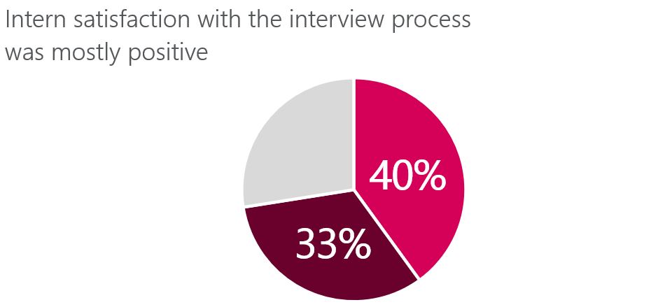 The survey targeted multiple internship cohorts. As the target audience for the program, they were able to speak to most of the evaluation core issues identified in the evaluation matrix, with a specific focus on performance. The survey allowed the evaluation team to gather a larger dataset from people who could not otherwise have been reached by other lines of evidence. The survey was designed to be neutral, easily understandable and accessible by all.