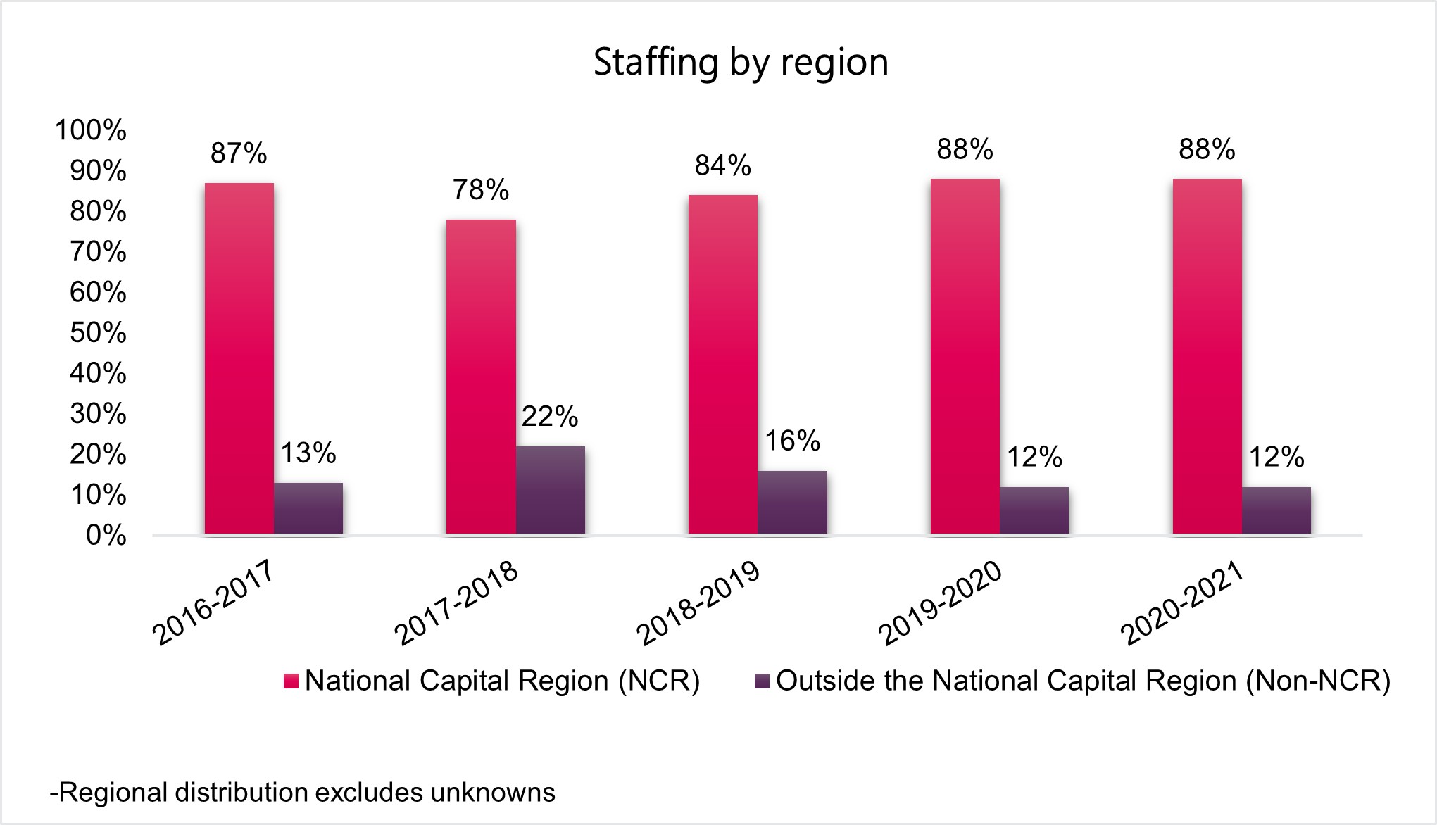 In 2020-2021, FedDev Ontario processed a total of 239 staffing actions: