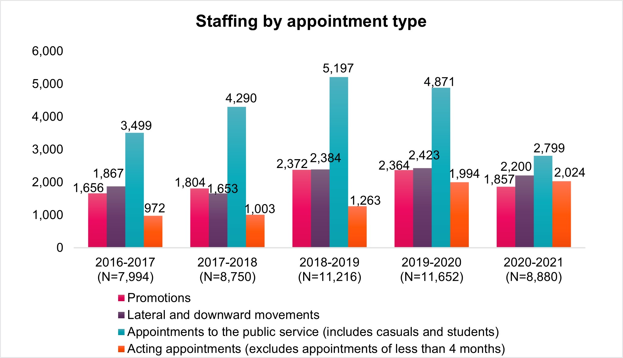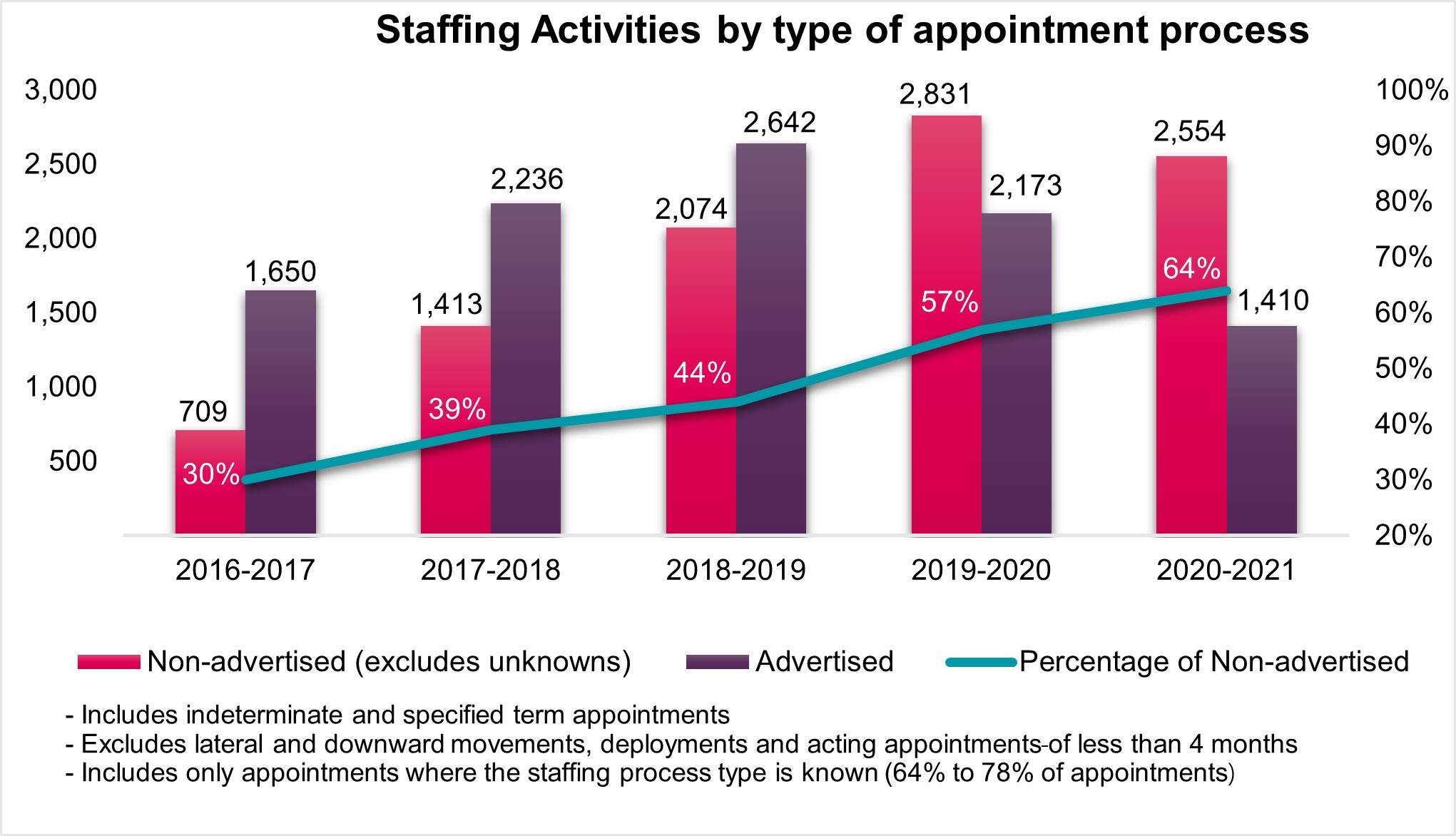In 2020-2021, PSPC processed a total of 8,880 staffing actions: