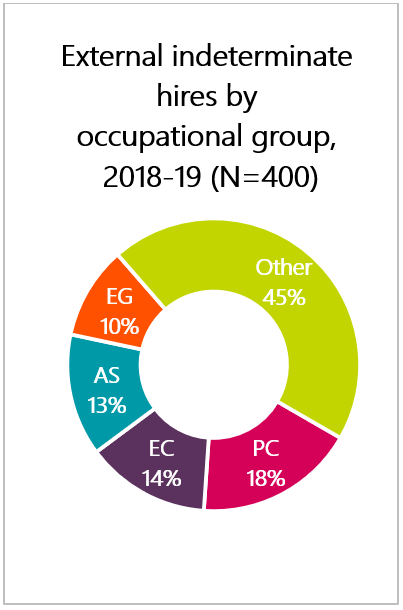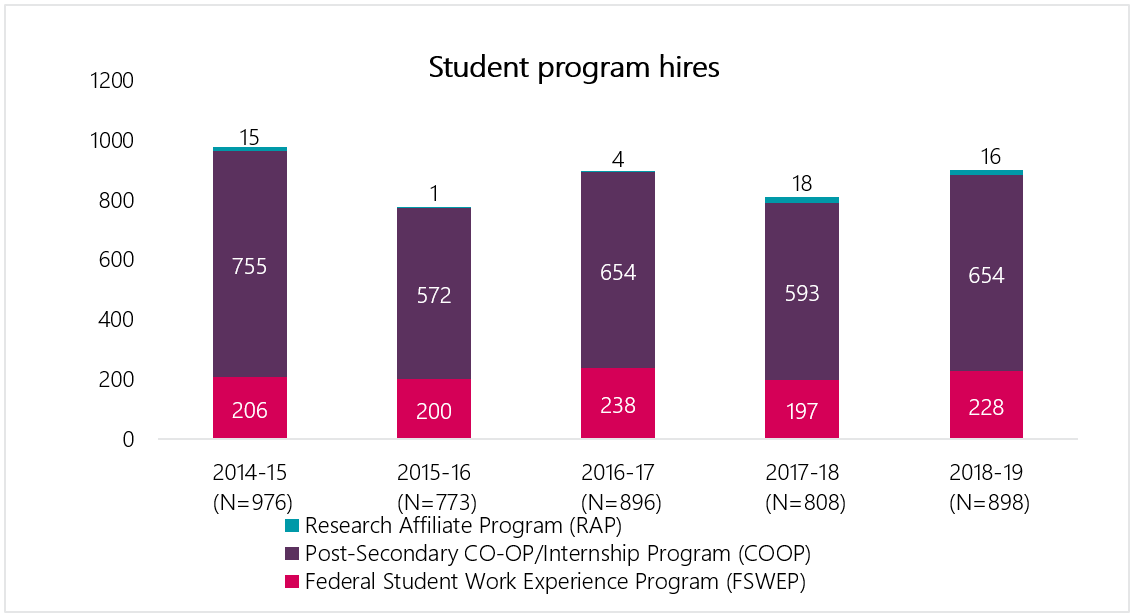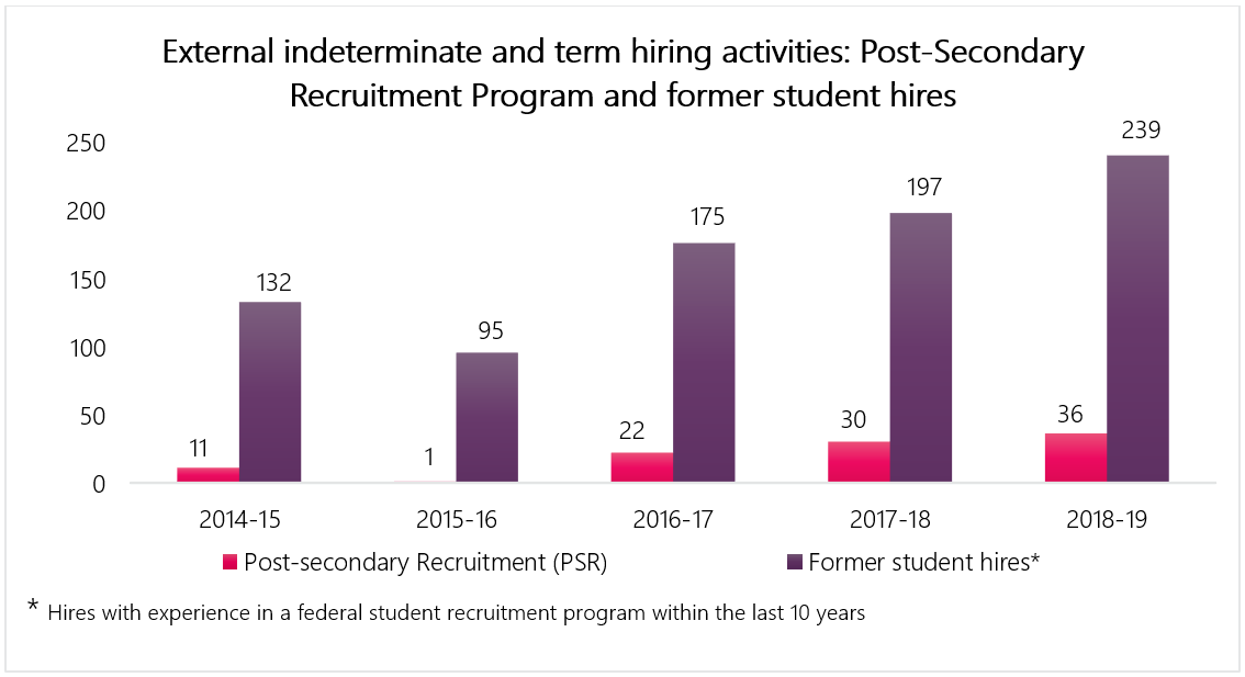 Hiring of former students includes indeterminate and term hires with experience in a federal student recruitment program within the last 10 years.