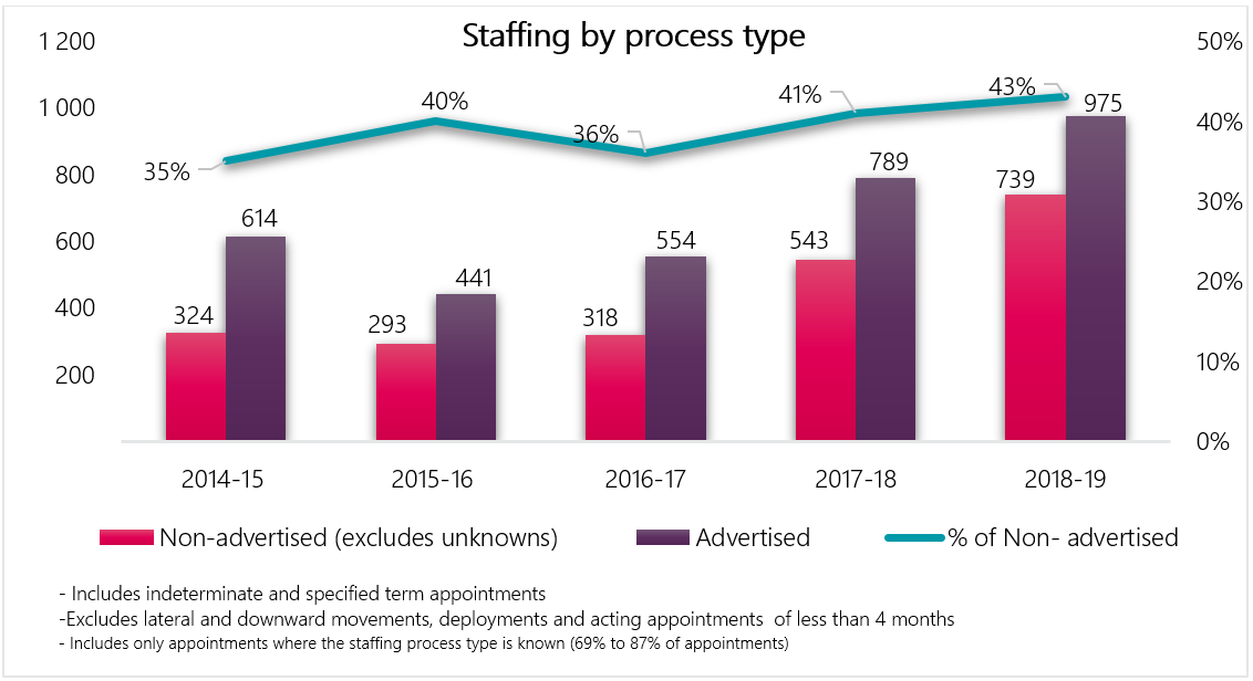 - the use of advertised and non-advertised appointment processes; and