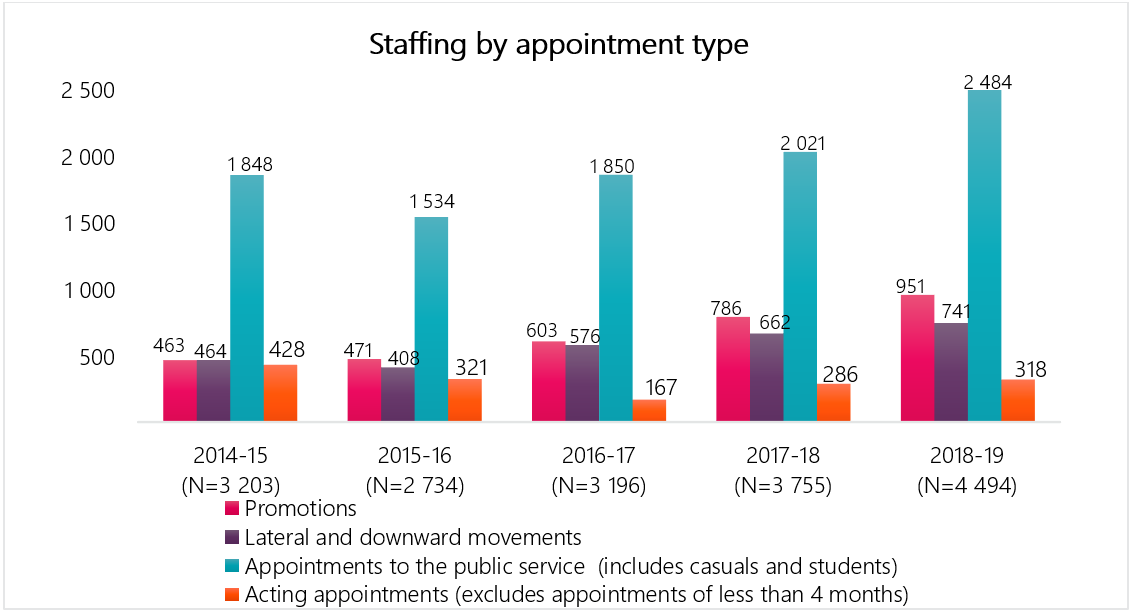 - 2484 appointments to the public service (includes 885 casuals and 898 students);
