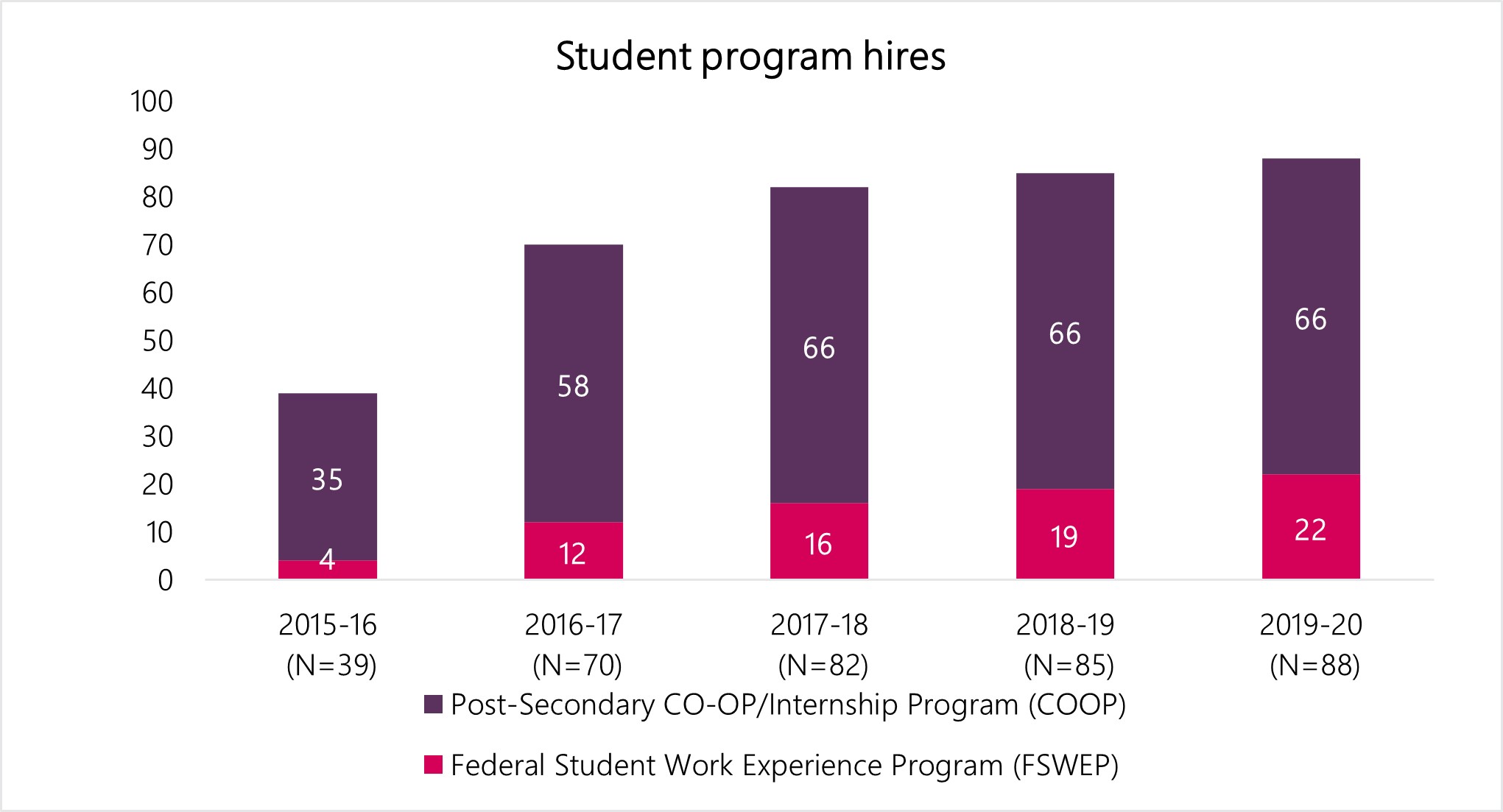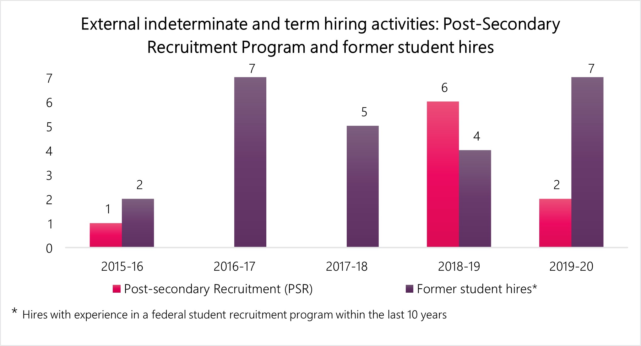 Hiring of former students includes indeterminate and term hires with experience in a federal student recruitment program within the last 10 years.