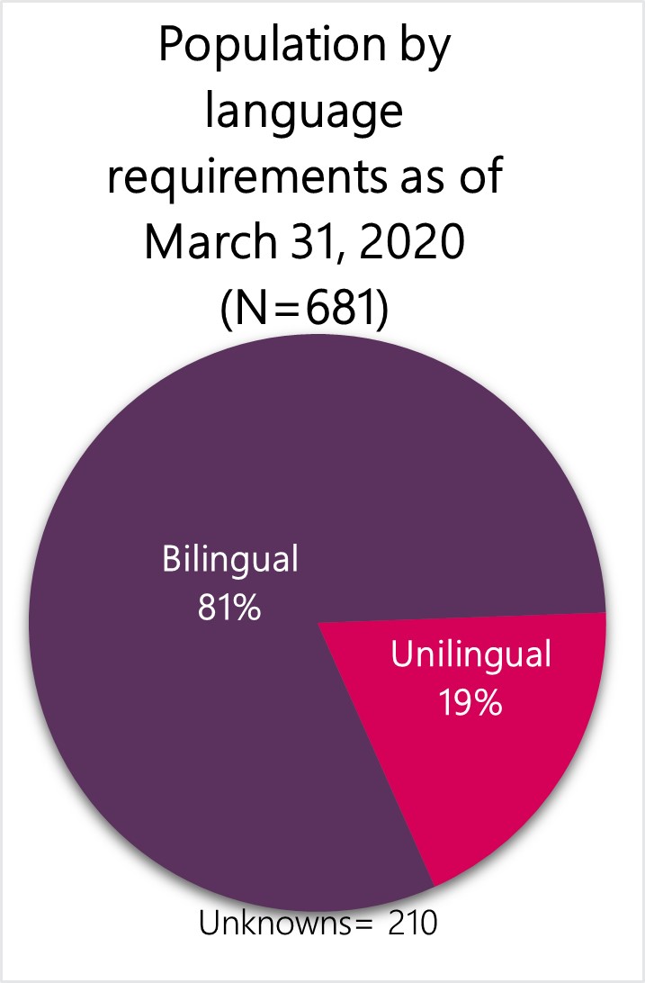 The CSA has reported that the organization made a single use of the Public Service Official Languages Exclusion Approval Order and the Public Service Official Languages Appointment Regulations for the period of April 1, 2019 and March 31, 2020. There were no unresolved situations where the employee did not meet the initial two-year period referred to in an agreement to become bilingual.