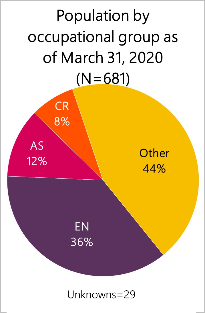 The CSA is a medium size organization with a population of 681 employees (as of March 31, 2020). Approximately 84% of its employees work at the CSA’s headquarters located at the John H. Chapman Space Centre, in St-Hubert, Quebec. The remaining employees work at the David Florida Laboratory in Ottawa and at their policy and planning offices in Gatineau. Some officials are also working in Houston, Washington and Paris.