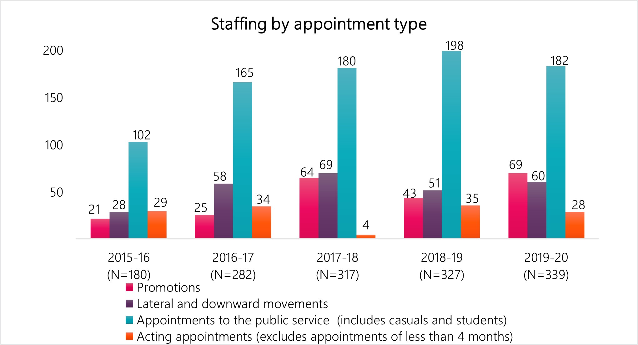 In 2019-2020, the CSA conducted a total of 339 staffing activities: