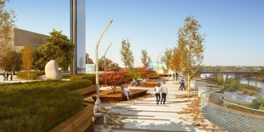The architectural design for the new facility, currently being finalized, will feature a curtain wall design, stainless steel stacks and box-like observation decks. At river level, there will be a public meeting area, while the upper plateau will have walkways, seating areas, greenery and spectacular views. The upper and lower plateaus will be accessible to the public and employees by a staircase and an elevator.