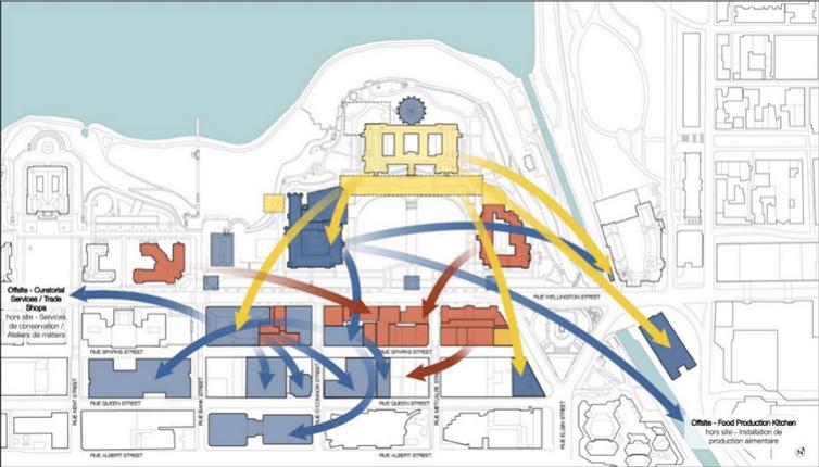 With parliamentary operations now taking place in the West Block and the Senate of Canada Building, PSPC’s focus has shifted to the rehabilitation of Centre Block, as well as the rehabilitation of remaining assets still in need of intervention in view of creating an integrated parliamentary campus. PSPC is therefore advancing the redevelopment of the 3 city blocks across from Parliament Hill, along Sparks and Wellington streets. The redevelopment of these blocks are also central to the restoration and modernization of other key assets, including the East Block and Confederation buildings.