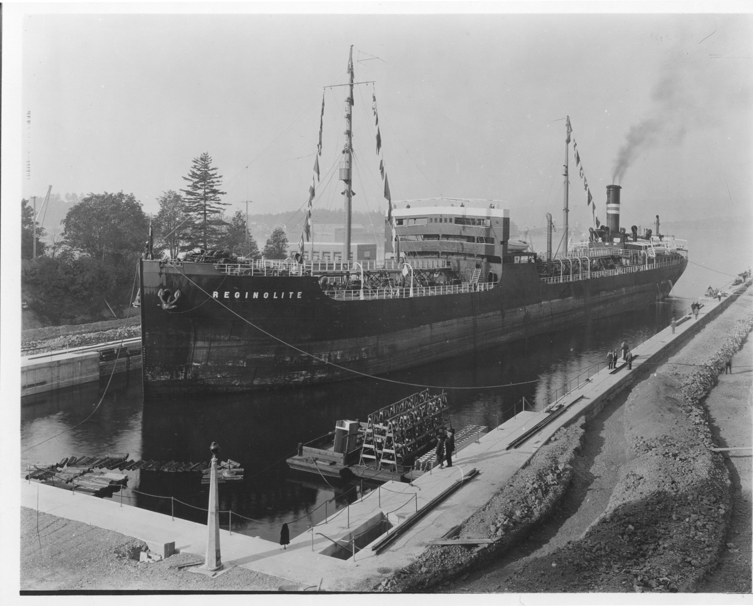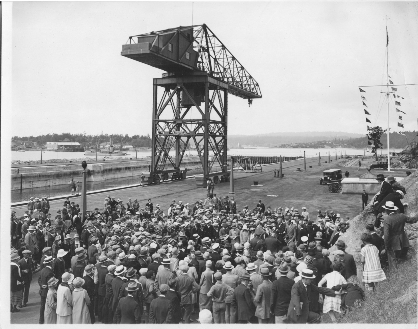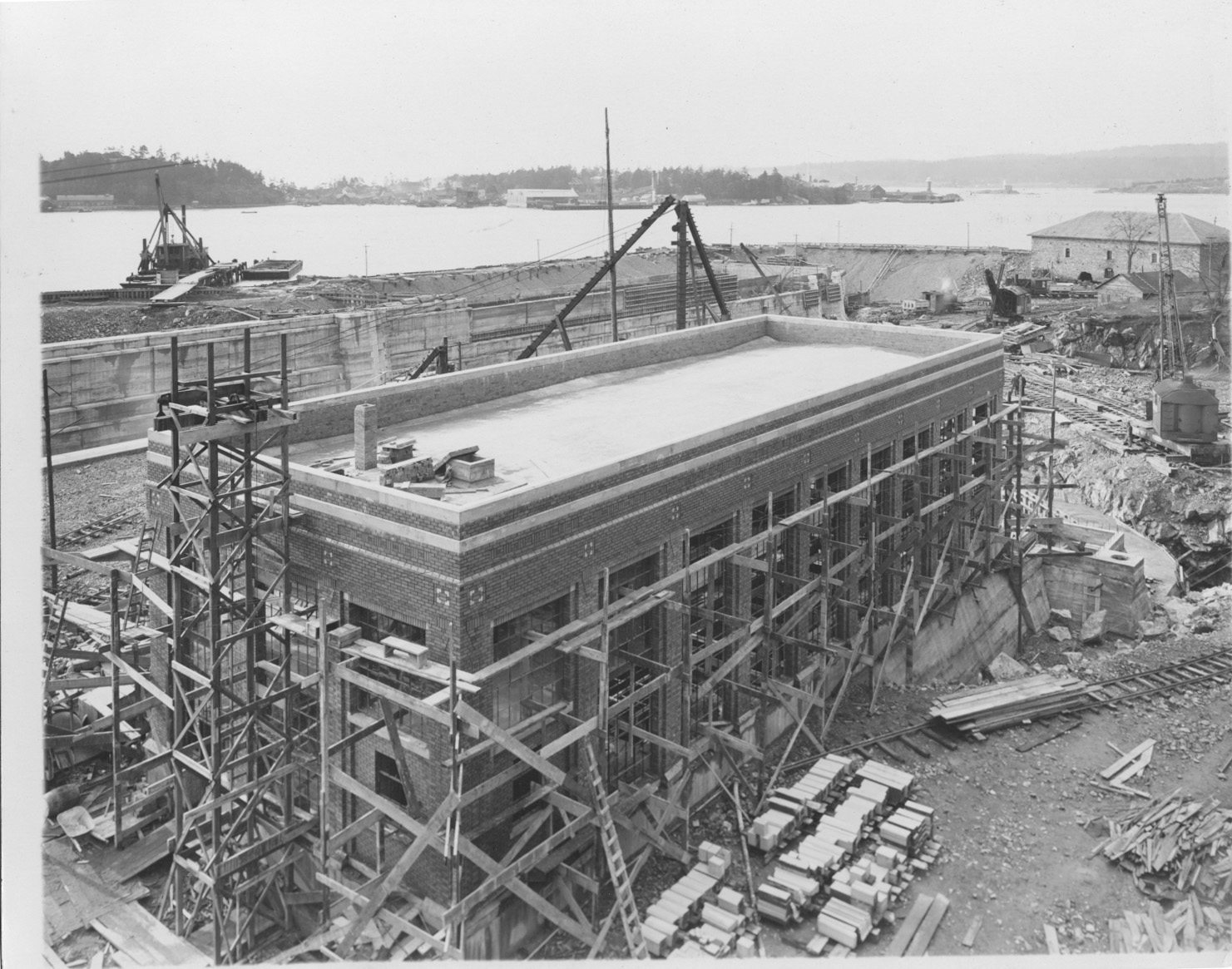 The Esquimalt Graving Dock was built from 1921 to 1926 to meet the increasing demands of the shipping industry in Canada. A smaller dry dock had been built across the Esquimalt harbour in 1887, but was increasingly unable to accommodate commercial vessels, which were becoming larger each year, and a new facility was needed.