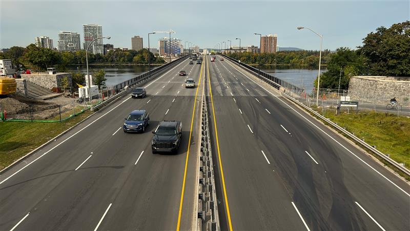 Lanes may be temporarily closed during construction projects. We are working with partners and stakeholders to mitigate commuting challenges. Stay informed about lane closures by following us on social media or visiting our web page on lane reductions and closures on interprovincial bridges in the National Capital Region.