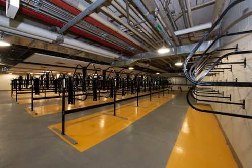 - a state-of-the-art bike parking facility, equipped with showers and lockers for active transportation and users