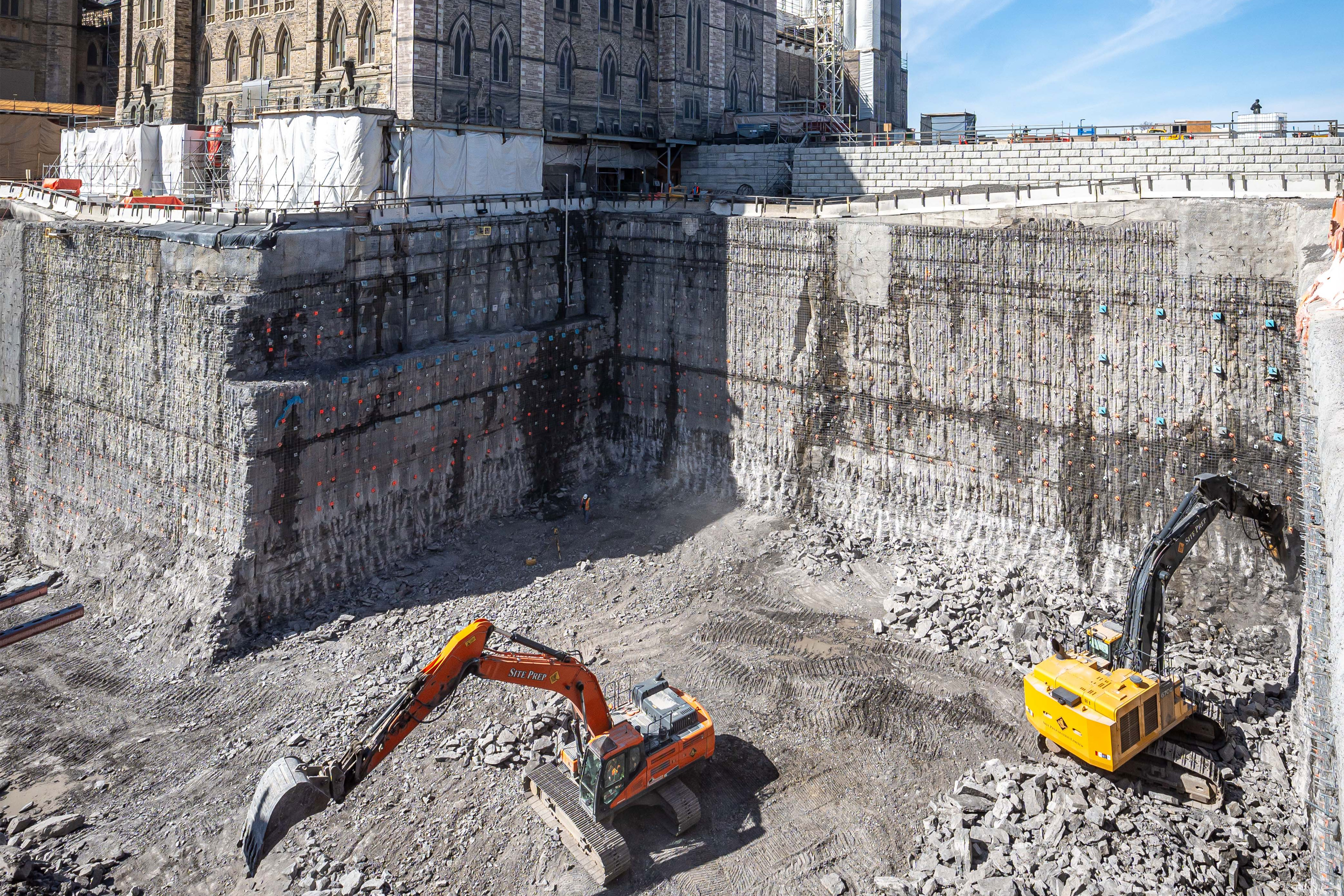 - In progress: Complete temporary concrete shear walls to support the Centre Block during excavation work