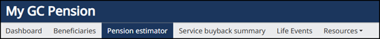 - From the menu at the top of the page, select the “Pension estimator” tab