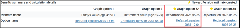 - The 2 graph options with stars will be the newest pension estimates created, based on the information you entered (the Deferred pension is the one you’ll want to consider)