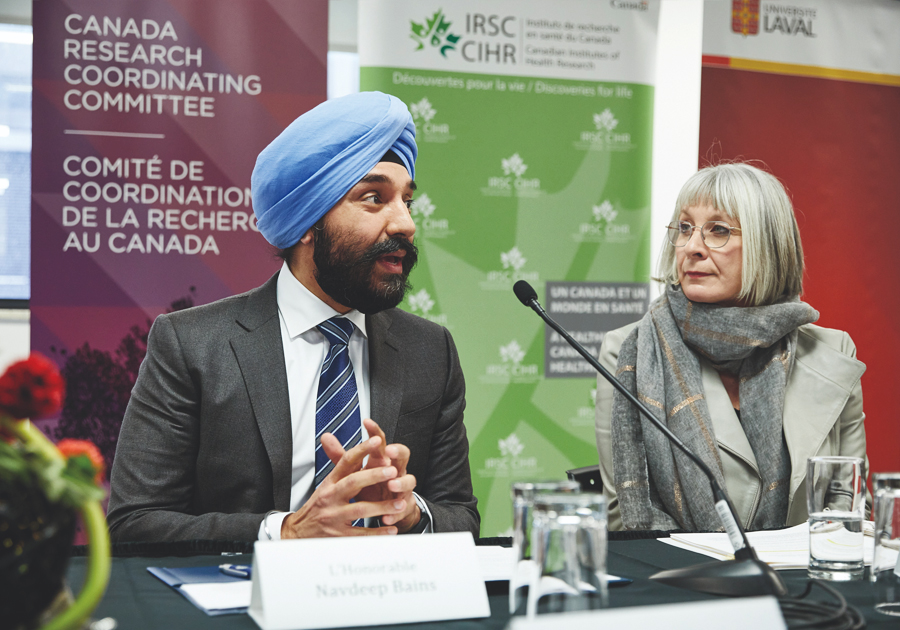 The former Minister of Innovation, Science and Industry, the Honourable Navdeep Bains, and the Minister of Health, the Honourable Patty Hajdu, announced $27 million in funding for Canadian-led COVID-19 research projects on March 6, 2020. CRCC contributed $7 million through NFRF for this initial, rapid-response call. Photo credit: CIHR