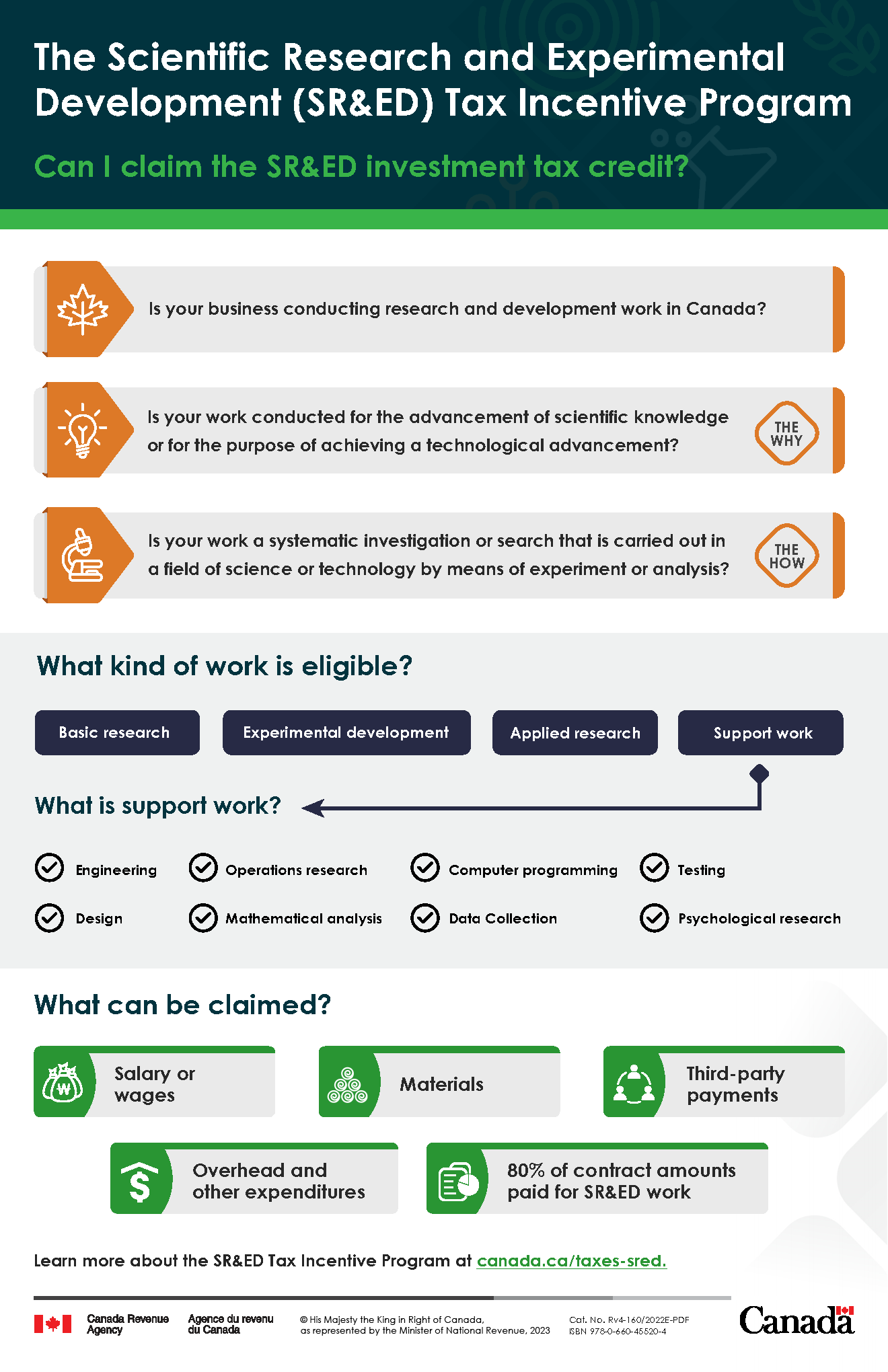 Learn more about the SR&ED Tax Incentive Program at canada.ca/taxes-sred.