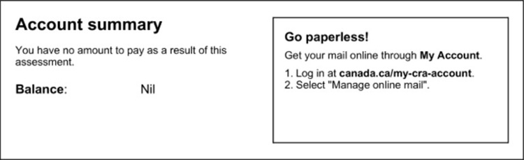 This section shows you the result of your assessed or reassessed tax return. This may be a refund, a zero balance, or a balance owing. The amount we show includes any outstanding balances you may owe from previous returns.