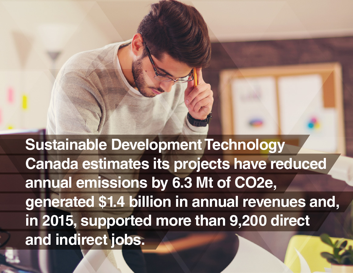 Sustainable Development Technology Canada estimates its projects have reduced annual emissions by 6.3 MT of CO2, generated $1.4 billion in annual revenues and, in 2015, supported more than 9,200 direct and indirect jobs.