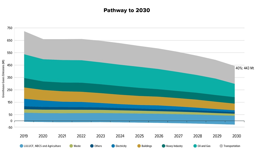 Broken down by sector, Canada’s pathway to 2030 is based on today’s understanding of the potential for each sector to reduce emissions by 2030. Given the economic interdependencies and interactions among sectors, the focus for further actions may shift in the future as Canada further decarbonizes, costs of abatement technologies change and other opportunities emerge.