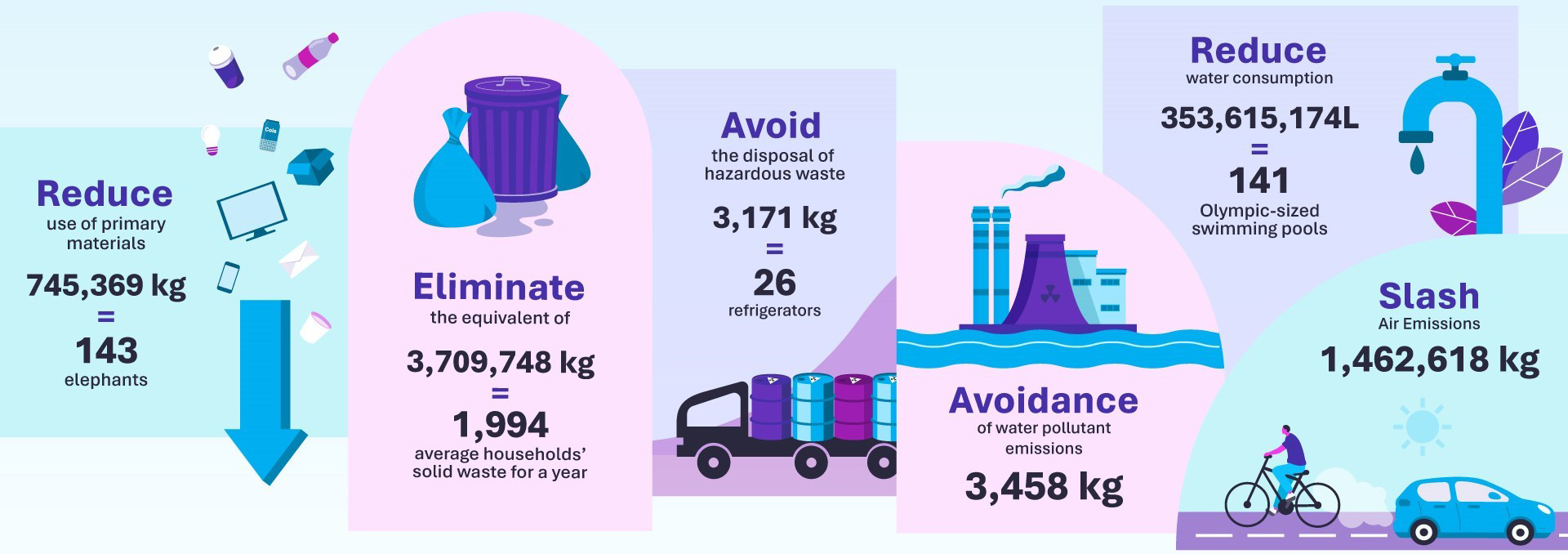 Total sustainability impact and cost savings for 364,994 products purchased in 2024