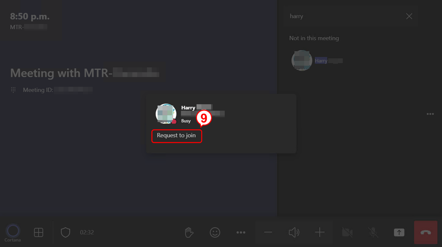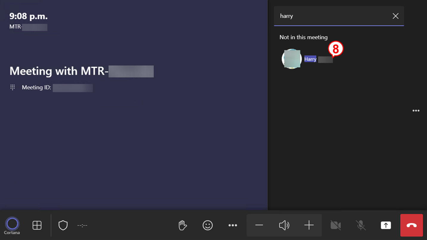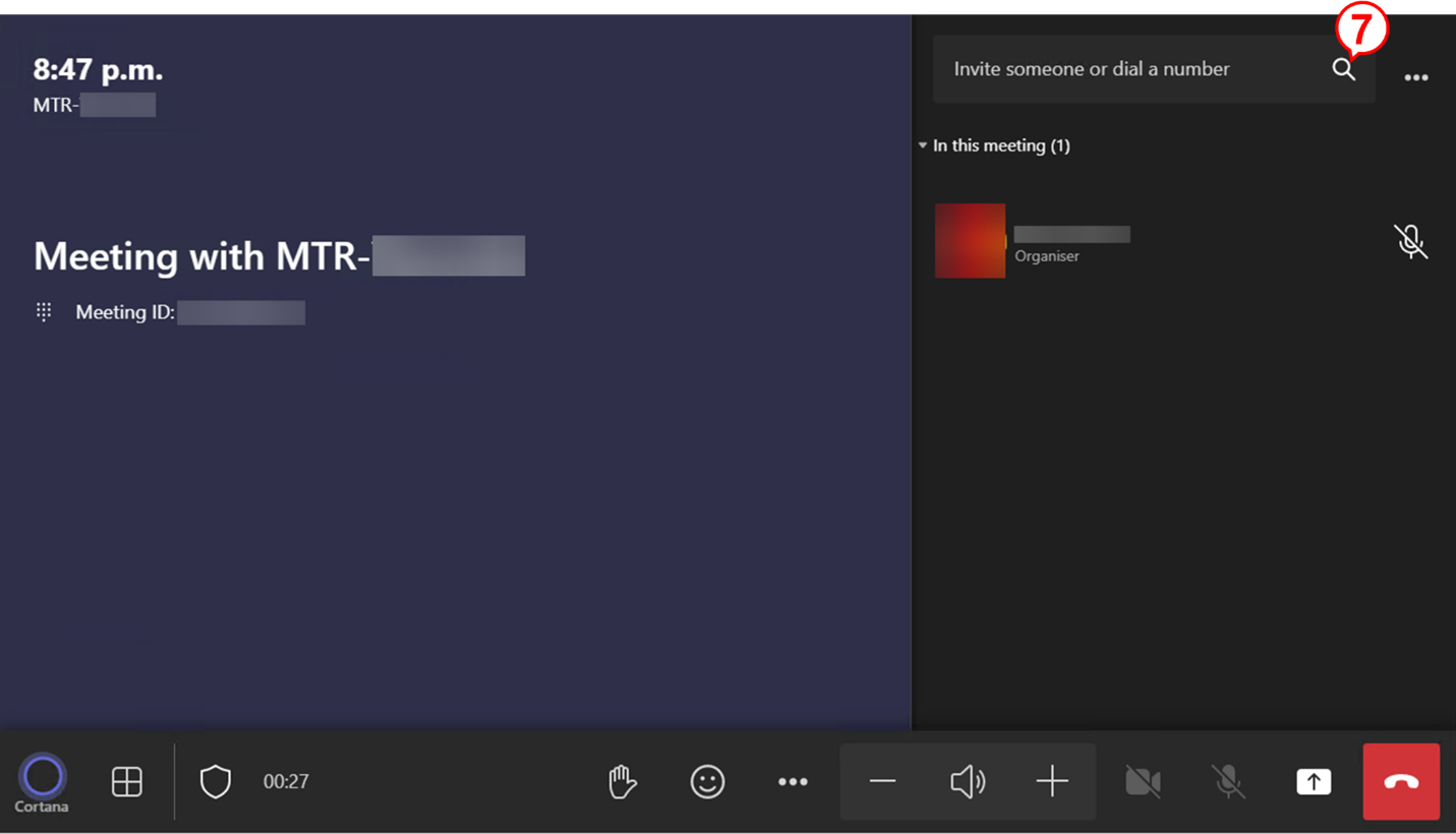To add participants to your meeting, enter their name in the "Invite someone or dial a number" (7) search bar.